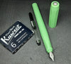 The Perkeo is an entry-level full-sized pen from Kaweco. The faceted body, grip, and cap are made of a solid green resin. The triangular grip helps keep your fingers in the proper grip position. It comes complete with a silver stainless steel nib.
