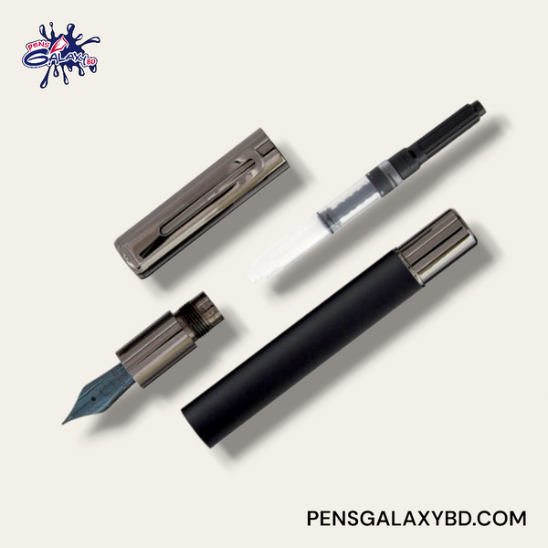 This black fountain pen comes with a standard international converter and an ink cartridge along with an elegant gift box.