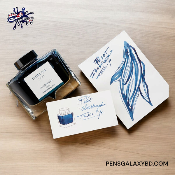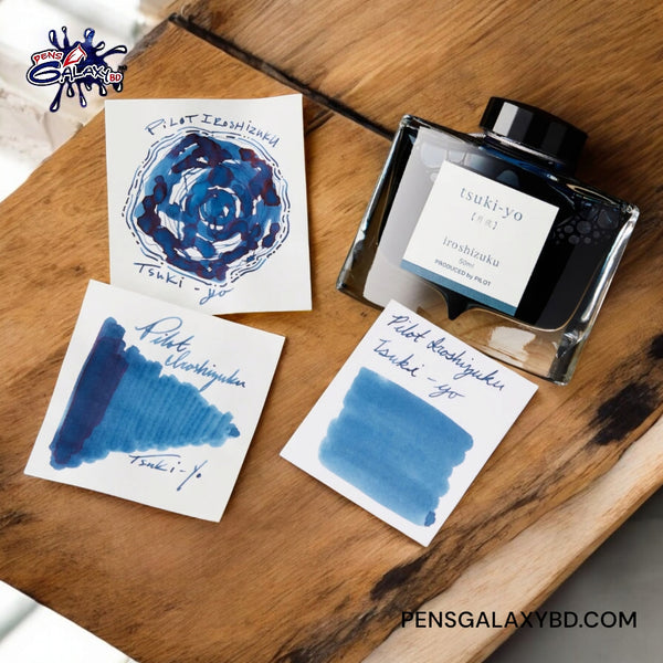 Pilot Iroshizuku Tsuki-yo ink provides dark blue color perfect for calligraphy, art, and journaling. This 50ml bottle allows for many uses, and the deep, bold color is sure to make your writing stand out.
