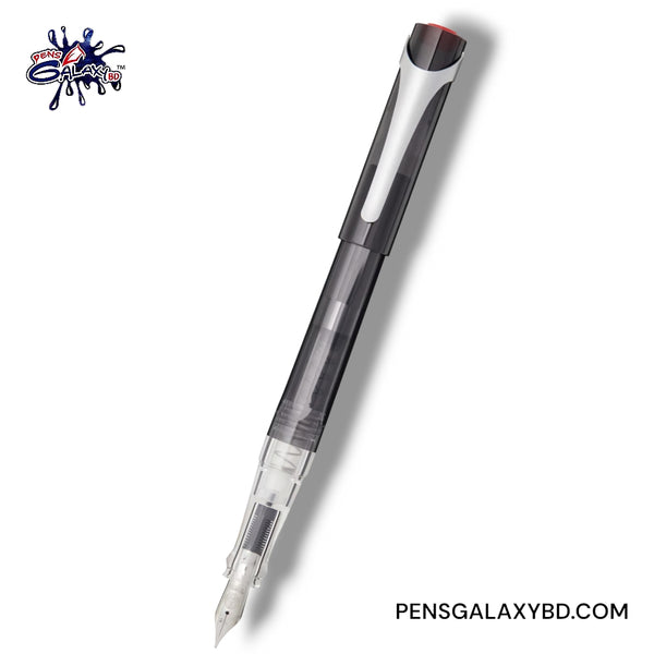 This pen has a translucent smoke grey body and clear grip section so you can see your ink flowing, and has a push/snap cap. It is completed with a silver stainless steel nib. The SWIPE uses the same #4 size nib as the TWSBI ECO and the TWSBI GO. It can also accept standard international ink cartridges.